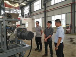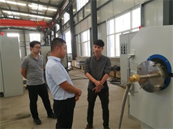 隨后陪同客戶在生產(chǎn)車間參觀了設(shè)備實物,客戶在設(shè)備實物旁饒有興致的提出了自己感興趣的問題。吳先生均一一作答。
